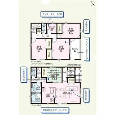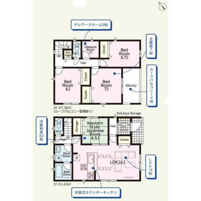 号棟番号:2号棟 :角地緩和 法第22条区域 建物面積に別途ルーフバルコニー約6.48平米有り 駐車場3台(車種による) |